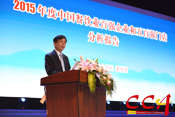 中國(guó)烹飪協(xié)會(huì)姜俊賢會(huì)長(zhǎng)發(fā)布《2015年度中國(guó)餐飲百?gòu)?qiáng)企業(yè)和餐飲五百?gòu)?qiáng)門店分析報(bào)告》