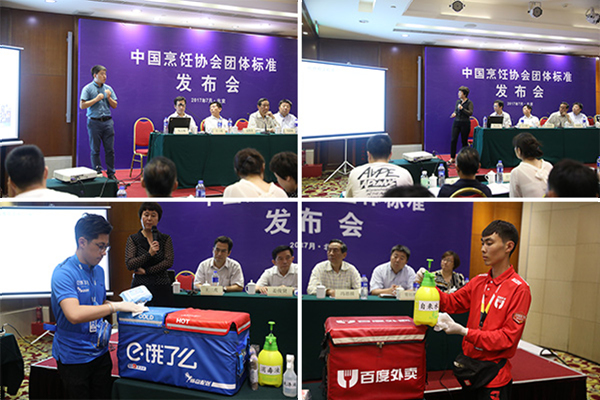 中國烹飪協會向餐飲企業代表贈送標準文本 7月11日,中國烹飪協會團體標準發布會在北京召開,T/CCA 001-2017《中國烹飪協會團體標準編寫指南》、T/CCA 002-2017《“百合花”餐飲業食品安全和營養管理體系要求》、T/CCA 003-2017《消毒餐飲配送箱(包)》三項團體標準于當天在現場發布。中國烹飪協會會長姜俊賢、副會長馮恩援、拉扎斯網絡科技(上海)有限公司副總裁王三虎,小度信息科技有限公司公共事務副總裁莊雁斌,希悅爾(中國)有限公司高級經理常紅勝、以及來自聚德華天、西貝、金百萬、東方餃子王等十余家企業代表和新聞媒體共同出席會議。